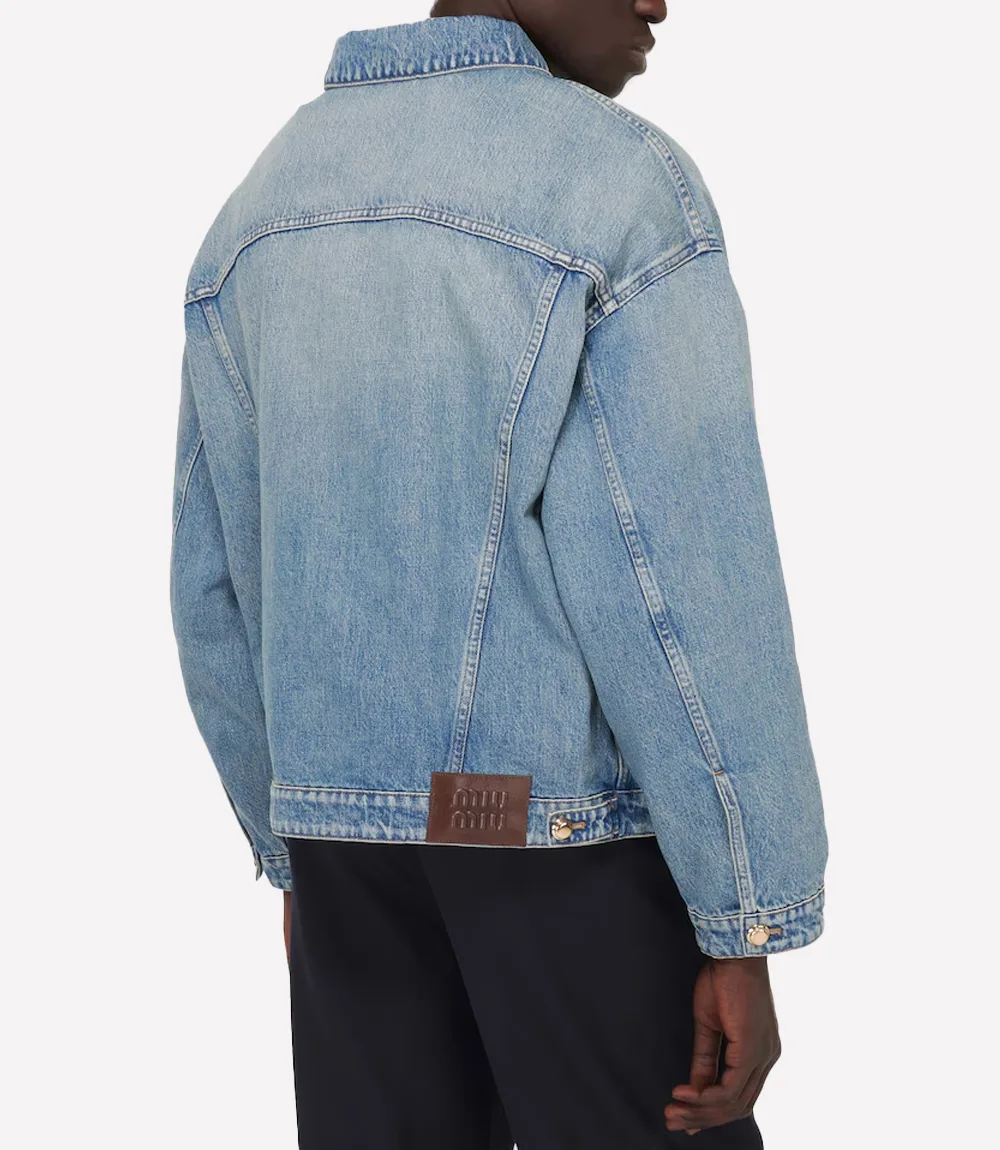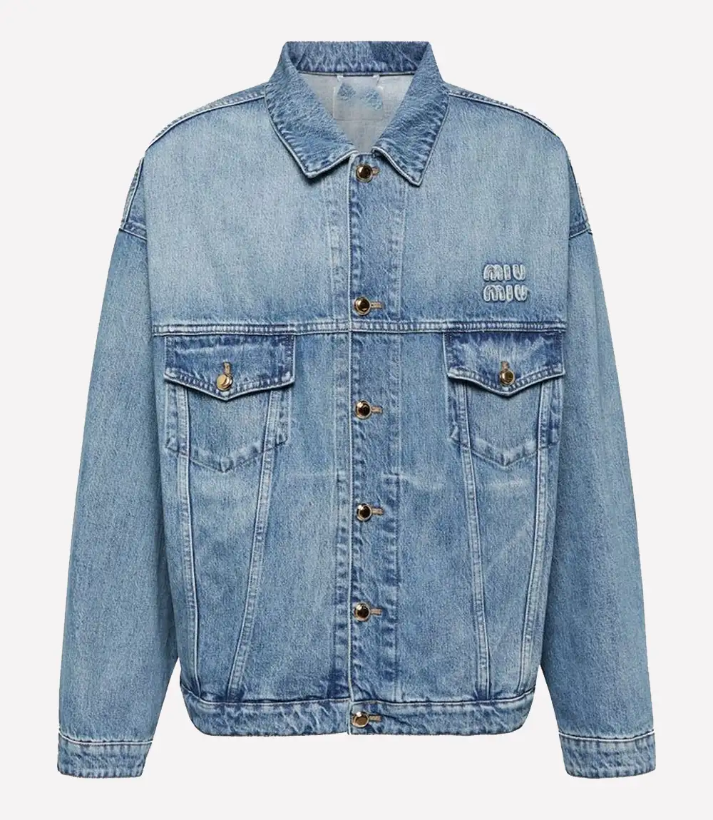 Unisex Miu Miu Logo Denim Blue Jacket – Recreation